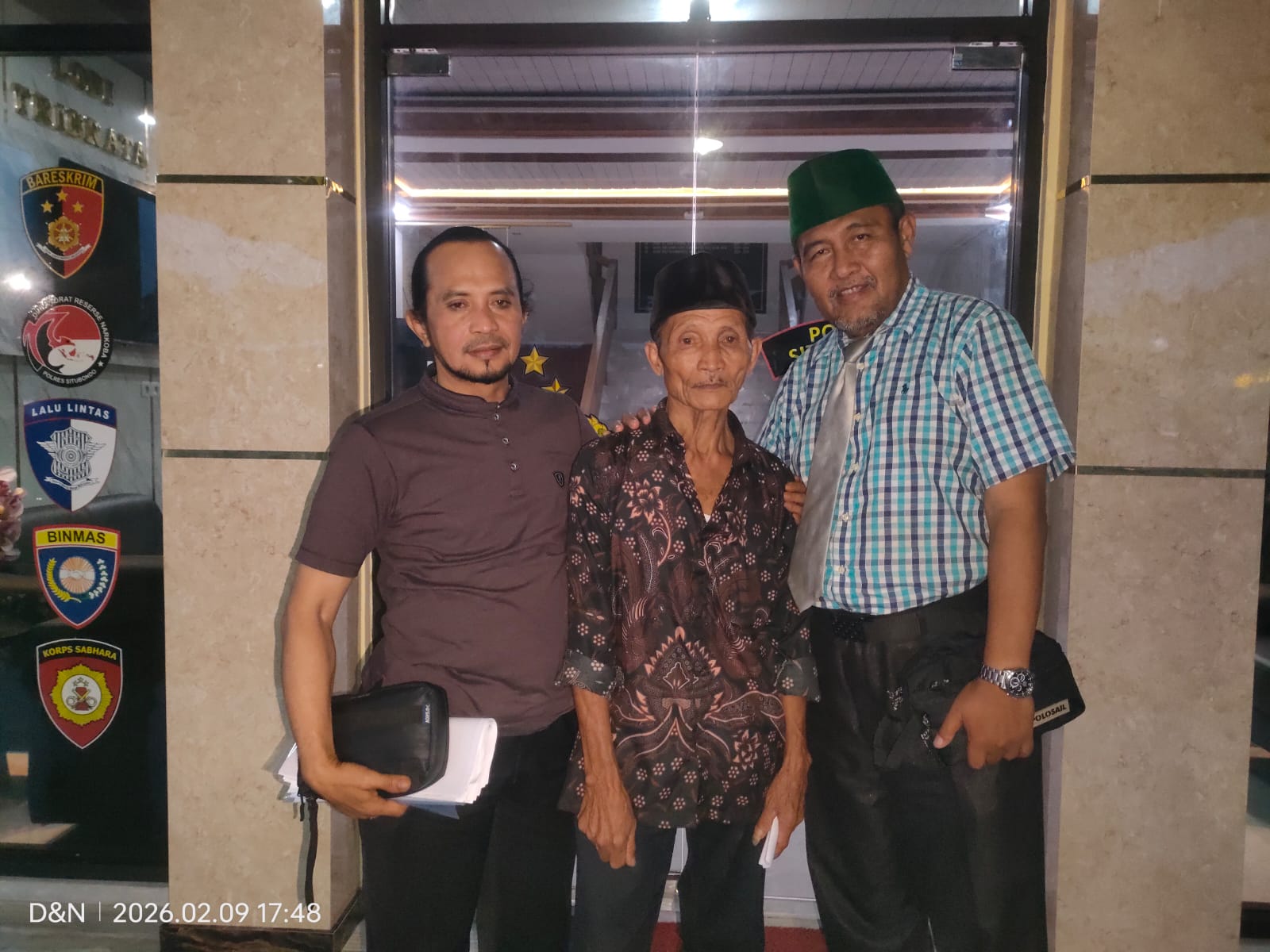 Didampingi dua kuasa hukumnya Dr. H. Supriyono, S.H., M.Hum. dan Taufik Hidayah S.H mendatangi Mapolres situbondo memenuhi undangan dari penyidik polres situbondo yang sempat tertunda dikarenakan undangan terlambat diterima Kakek Halil