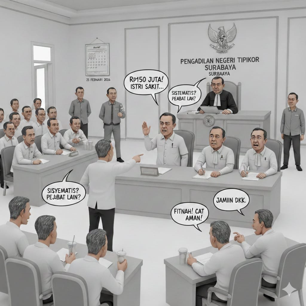 Kemudia “Bagaimana pihak terdakwa menanggapi pengakuan Camat Tarokan? Apakah ini membuktikan adanya sistem yang terstruktur di tingkat kecamatan?”