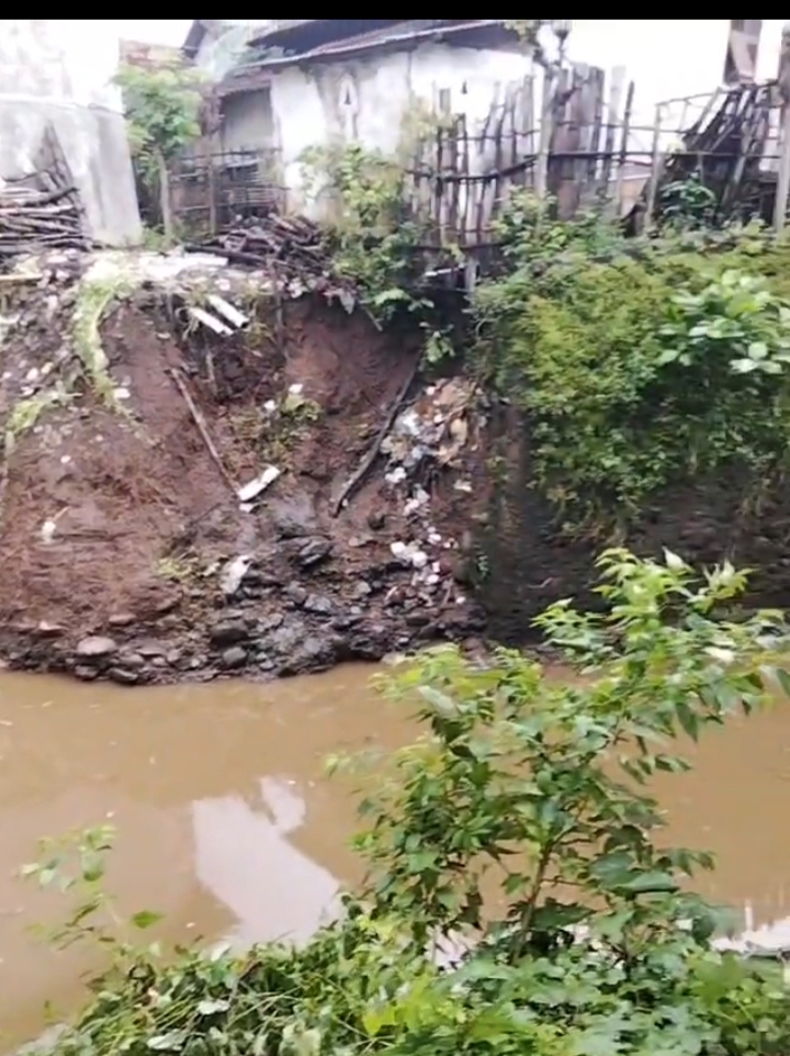 hujan yang turun sejak sekitar pukul 12.00 WIB kemarin hingga dini hari menyebabkan volume air di sekitar aliran sungai meningkat drastis. Struktur yang sudah ada cukup lama akhirnya tidak mampu menahan tekanan air dan tanah, sehingga bagian belakang rumah ambrol kurang lebih 15 meter