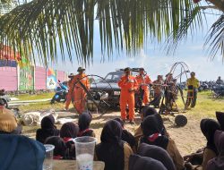 pengendara motor para layang turun ke lokasi untuk menguji performa kendaraan sekaligus menikmati sensasi melaju di area pantai yang terbuka. Suara menderu mesin dan asap knalpot memenuhi area tersebut, memberikan suasana berbeda di tengah keindahan alam pantai.